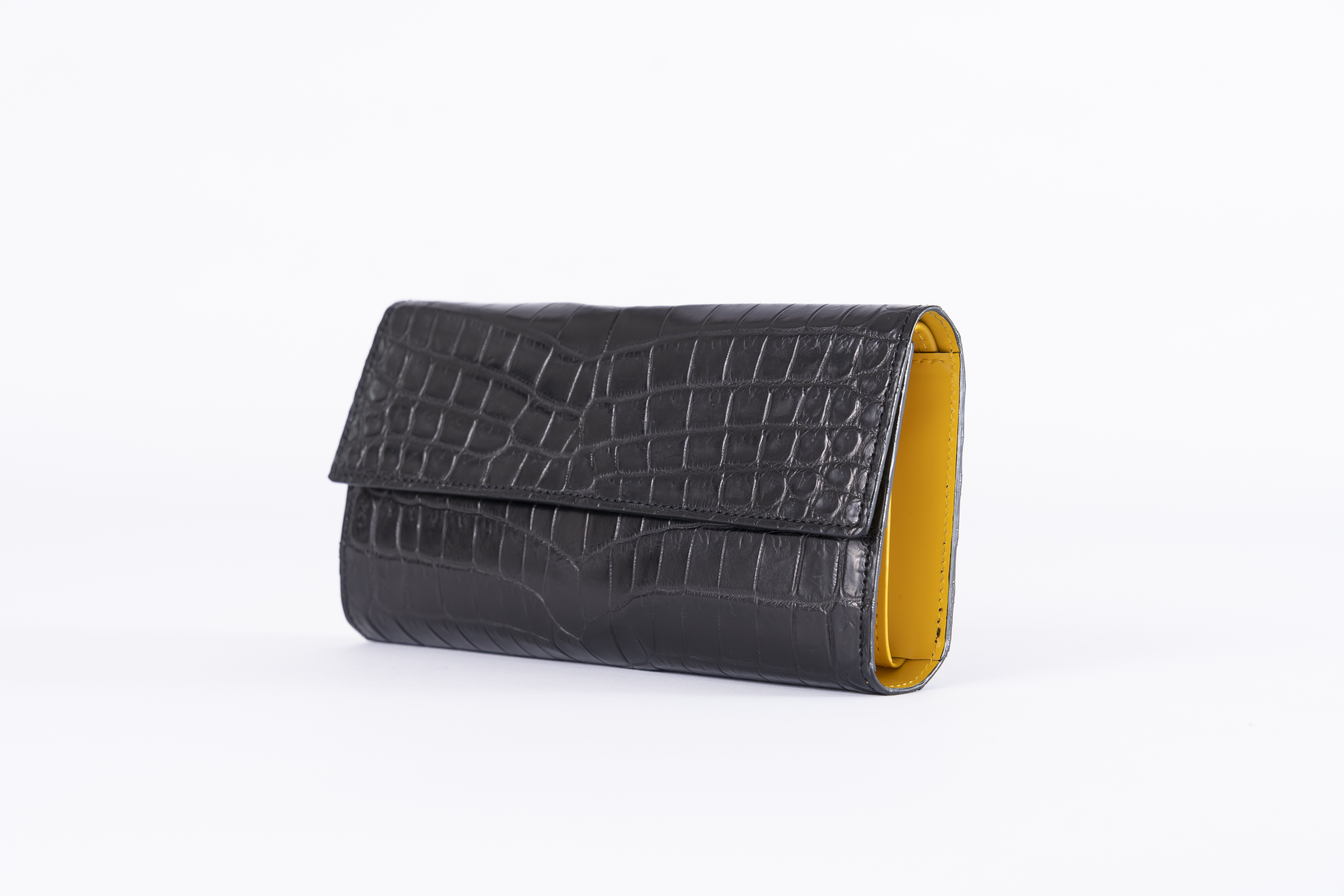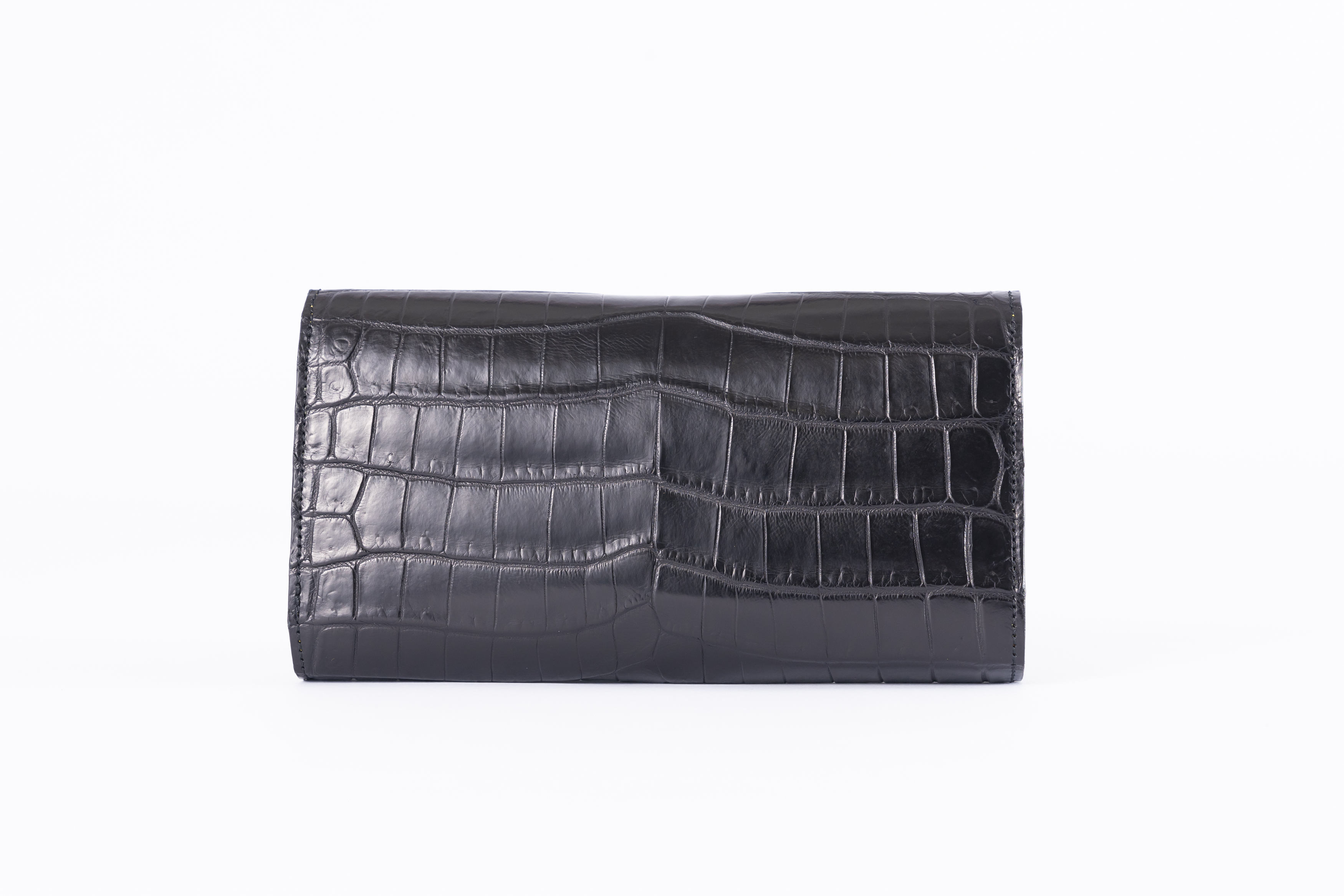 ふんだんにワニ革(クロコダイル)を使ったこの長財布はワイルドで 男らしい印象。高い収納機能と快適な使い勝手、そしてスマートな 印象を兼ね備えている。丈夫で精悍な表情のワニ革と、紙幣や硬貨を ザクザク入れられる自由度の高い設計は男らしい印象。 無駄のないデザインで、ビジネスに相応しい品位も兼ね備え美しい大人の財布だ。