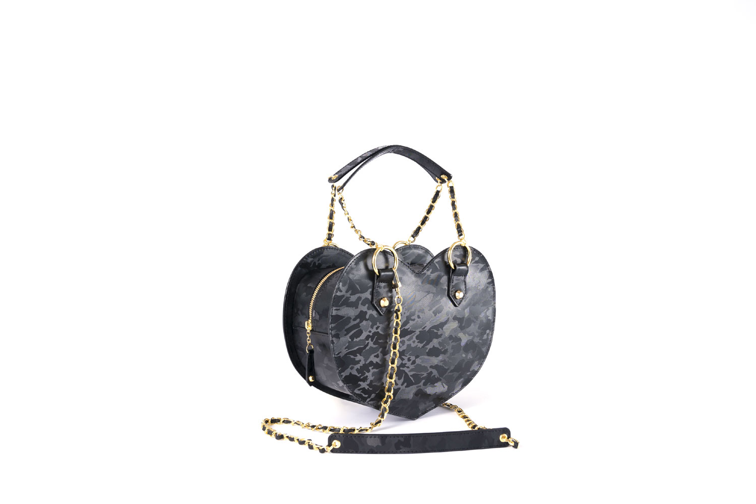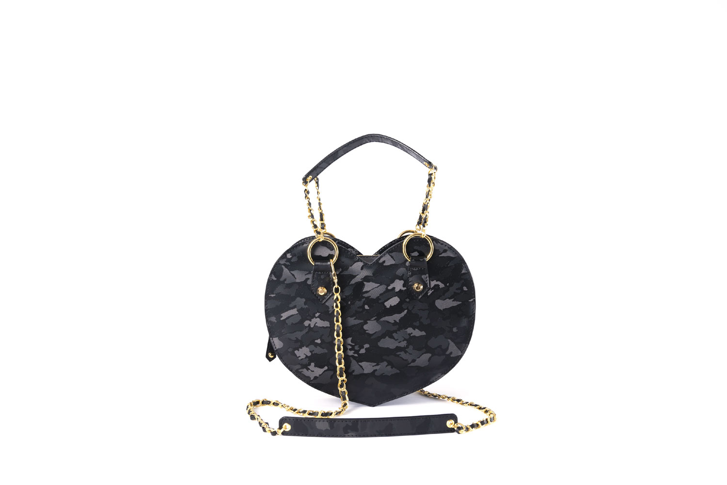 遊び心のある一度目にしたら忘れないハート形デザインのショルダーバッグ。 形・カラー共に独特で個性的なデザインになっています。 お出かけに必要な物を入れるのに丁度いいサイズ感で気分やシーンによって 肩掛けや斜め掛け、手持ちなど自分に合った形で軽快に持ち歩ける一品。