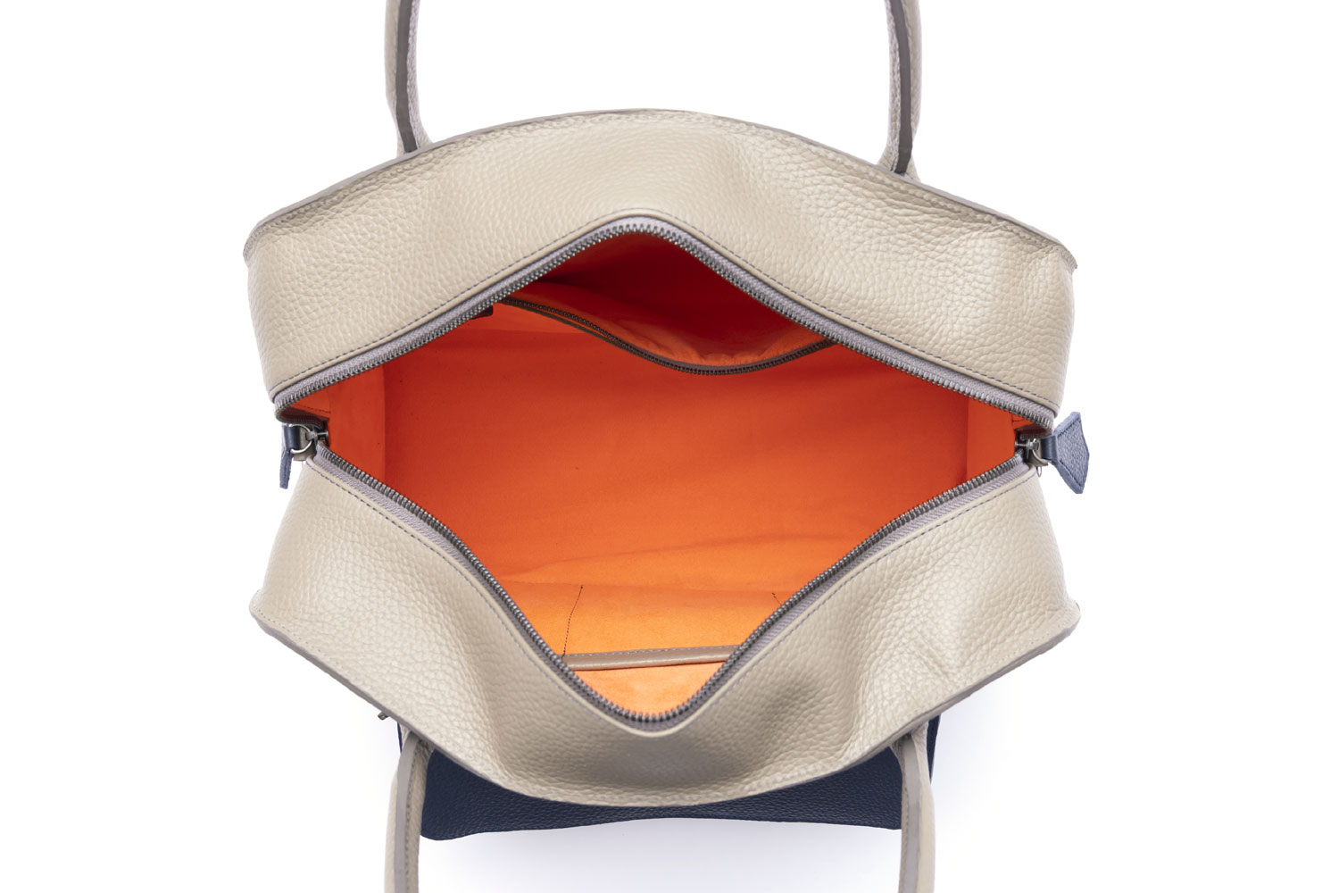 広々としたデザインとスッキリした見た目が魅力の日常使いに ぴったりな本革を使用したトートバッグ。 スタイルに合わせて楽しめ、使い勝手も良い アクセサリーのような鞄。 軽やかさと程よい収納力を両立し、男女関係なく使える色味になっている。