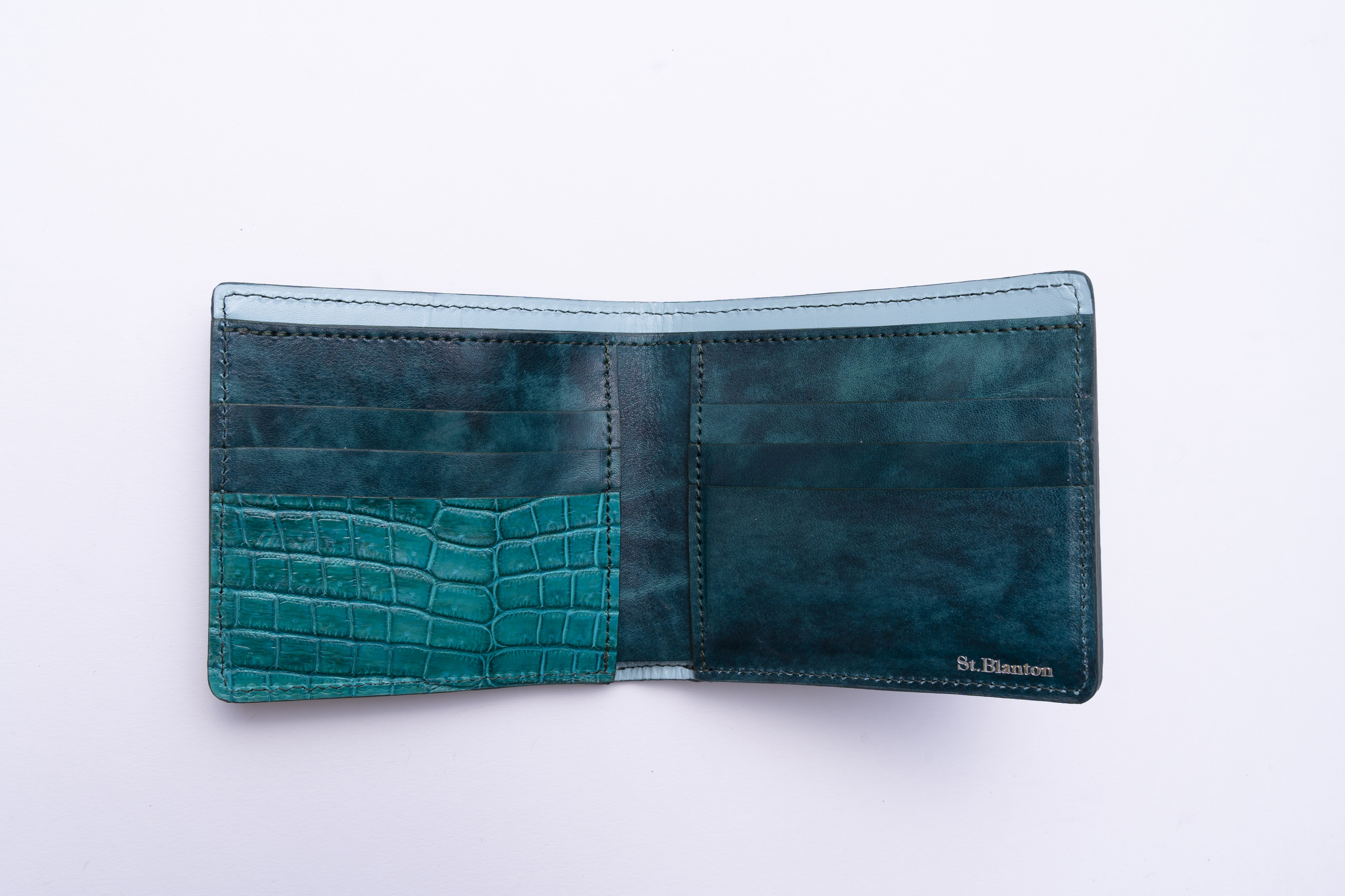 頑強な仕立てと風格を極めた別格のスタンダード。 堅牢さと重厚な風格を併せ持つ、上級の二つ折り財布。 一度目にしたら忘れない独特な色合いに、内装にはワニ革(クロコダイル) を使っているためアクセントもプラスされる。 ポケットにすっきり入るサイズなので、扱いやすく、快適な使い勝手。 使い込むほどに革の風合いが深まって愛着が増すばかりだ。